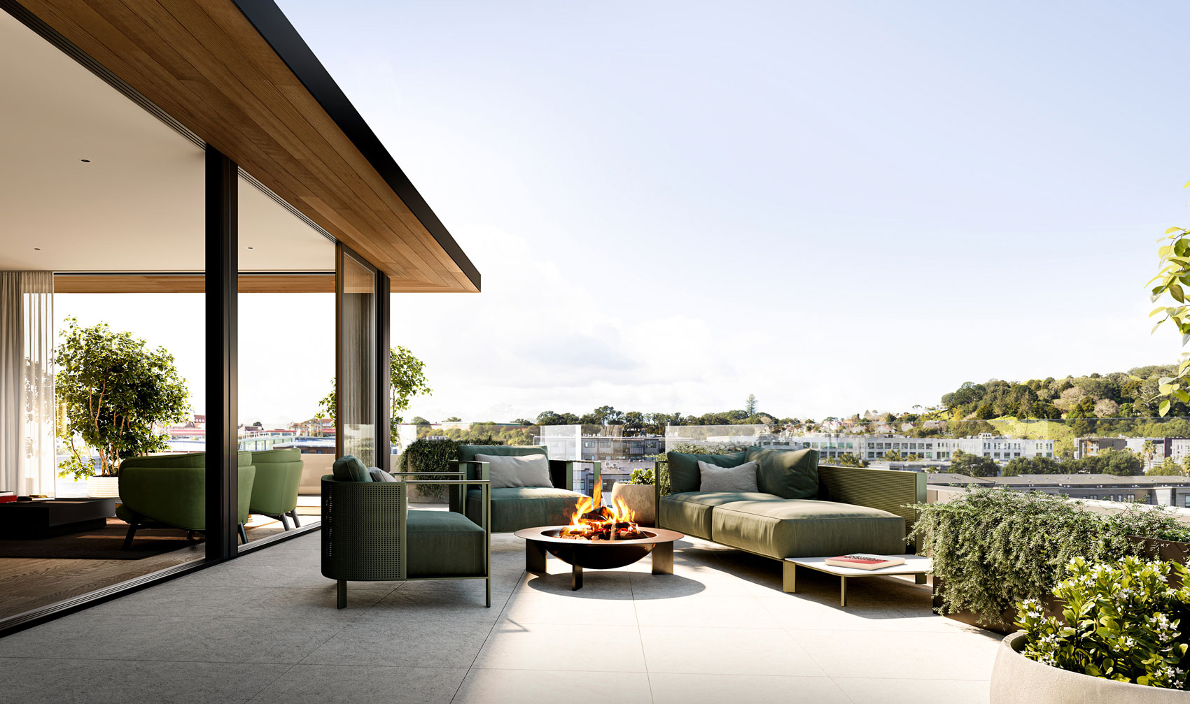 Every unit features a covered balcony so residents can enjoy the eclectic urban views from the needle of the Sky Tower to the north, to the conical form of Mt Eden on the building’s southern side. West-facing apartments have distant views of the Waitakere ranges.